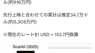 なんG 【訃報】果てしなきスカーレット、アメリカの初日興収6万ドル(900万円)
