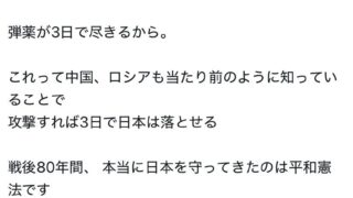 嫌儲 X民「開戦したら自衛隊の弾薬は3日で尽きる」→ネトウヨ発狂へへ