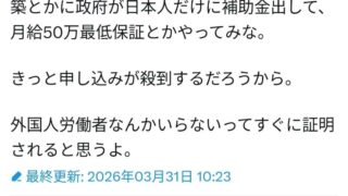 なんG 愛国者「試しに介護や製造業を月収50万で募集してみな。人が集まって外国人がいらないと分かるからさ」