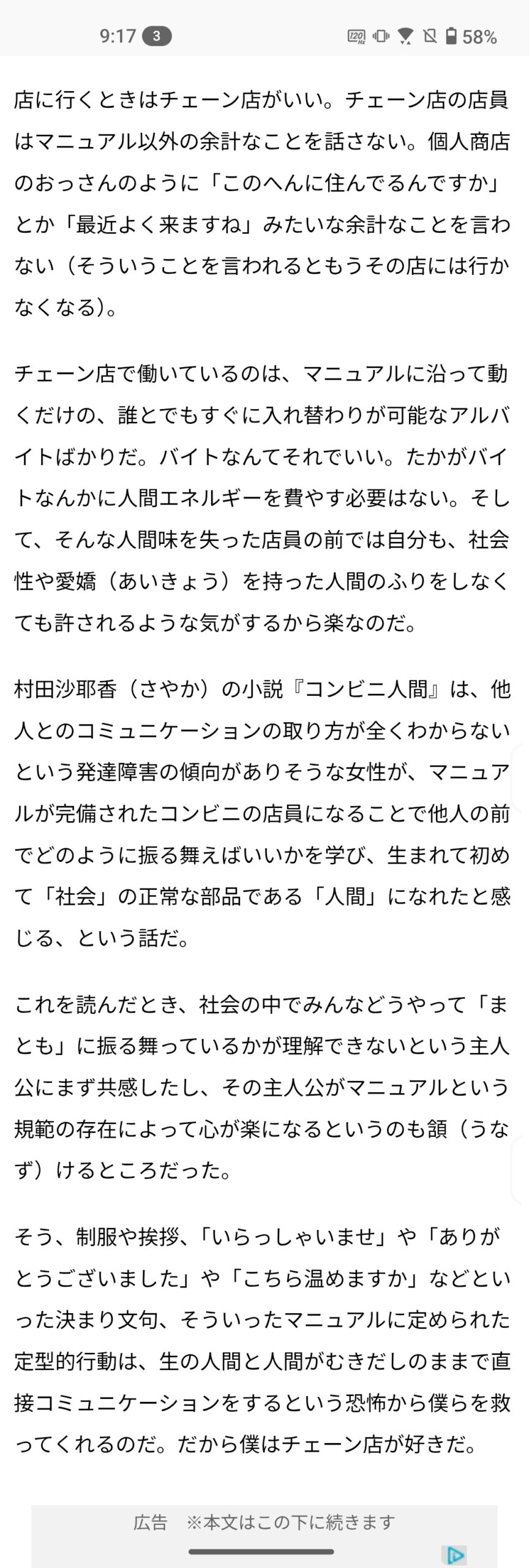 気持ち悪い連中をチェーン店が隔離してくれてる側面もある