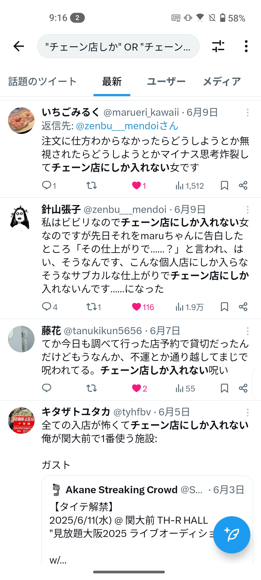 歌舞伎町とか渋谷池袋の繁華街ではチェーン居酒屋しか入らないようにしてる