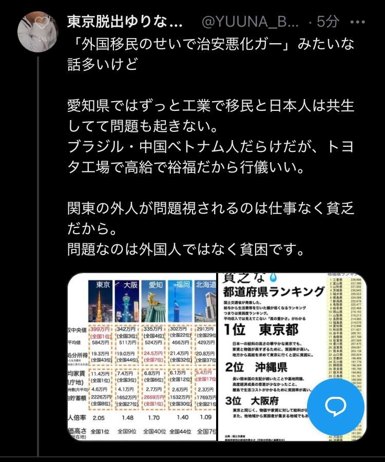 【ウヨ悲報】愛知県民「移民で治安も経済崩壊ってなんの妄想?愛知では外人労働者だらけでみんな裕福で大人しいけどw」