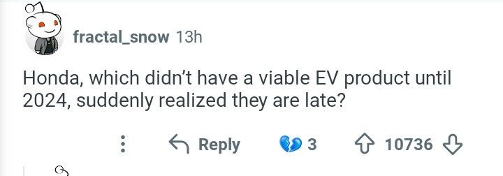 ホンダは2024年までEVを売ってない位だったのに、自分たちが遅れていることにようやく気づいたの?