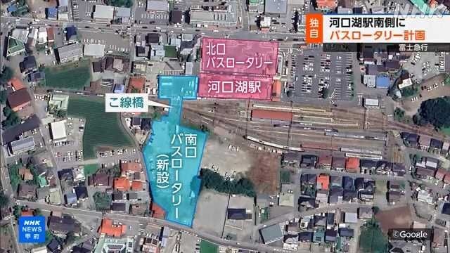 河口湖駅 外国人観光客増加で南側にバスロータリー新設計画