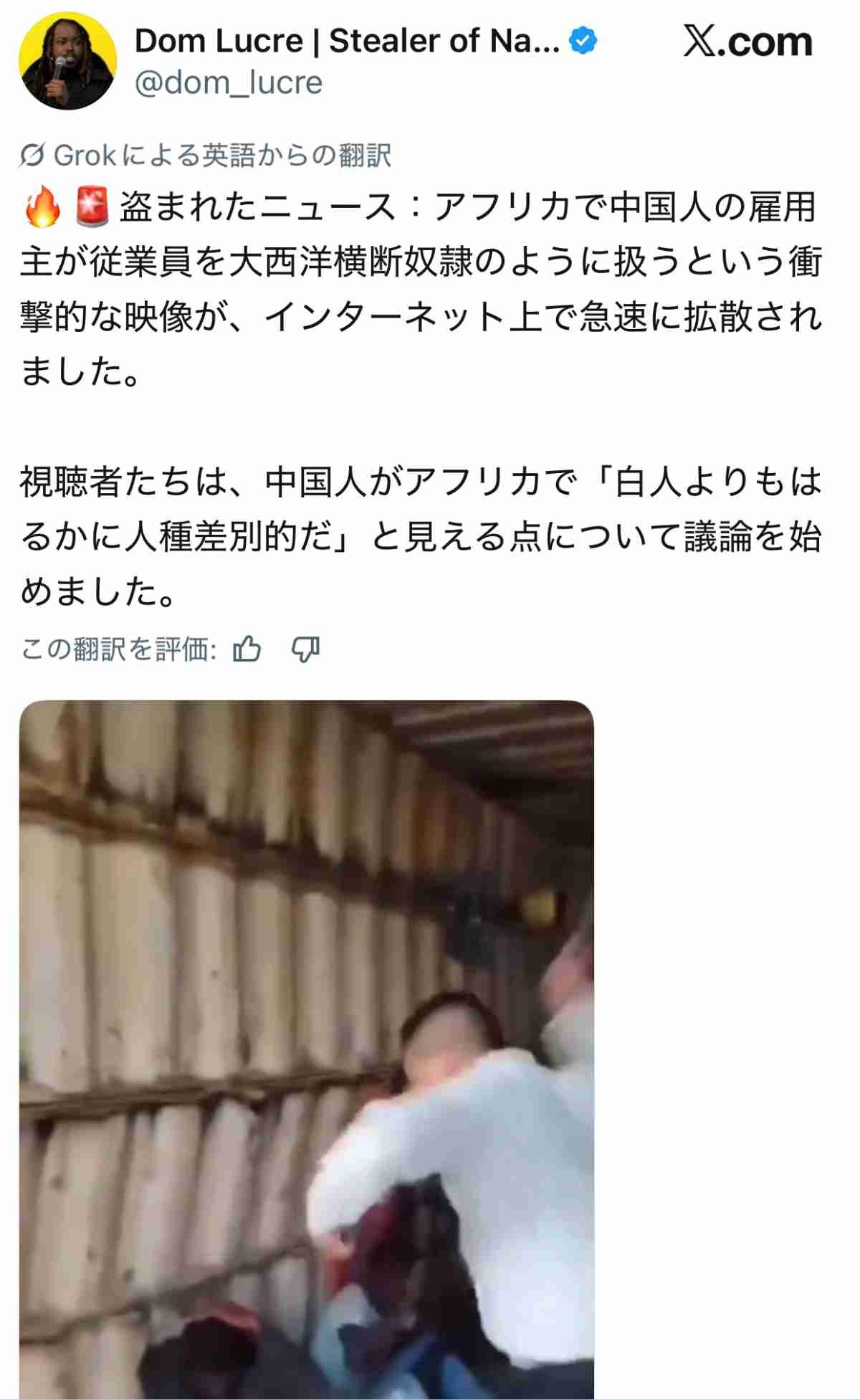アフリカだと中国人めちゃくちゃ嫌われて殺人事件とか起きてるんだよな