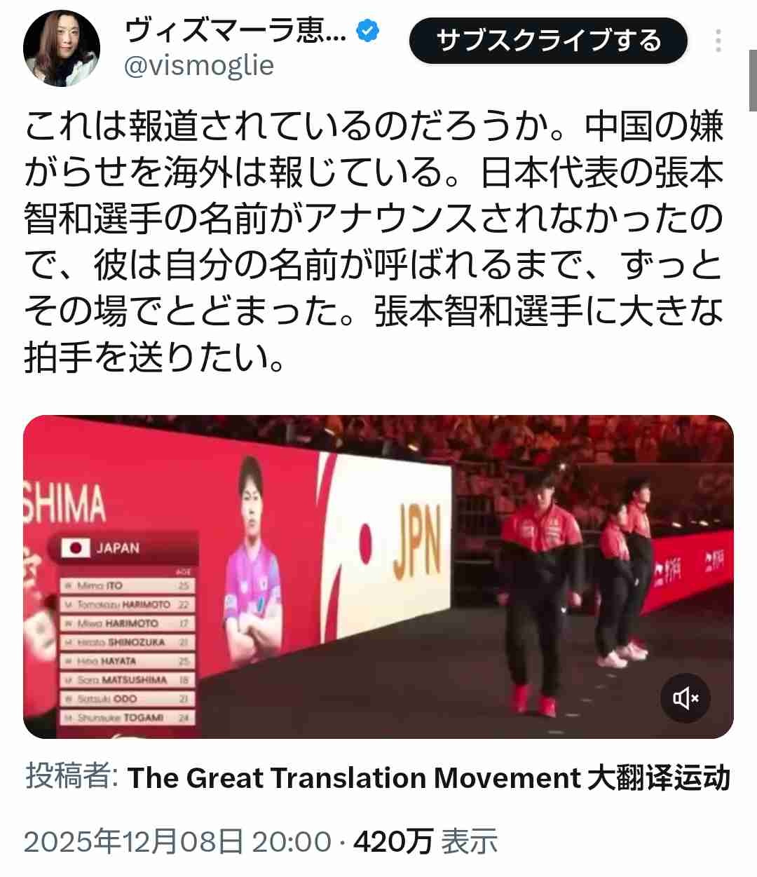 中国選手が張本にブーイングする観客にブチギレって記事は見た