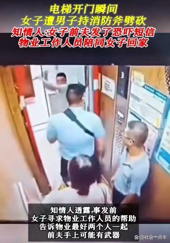 7月14日、江蘇省のある女性は元夫から脅迫のショートメッセージを受け、怖がって屋苑の不動産管理者に家まで送ってもらったが、エレベーターがドアを開けた瞬間、元夫は消防斧を持って彼女を斬った。幸い、同行した二人のスタッフは素早く反応し、力を合わせて彼を制圧した。