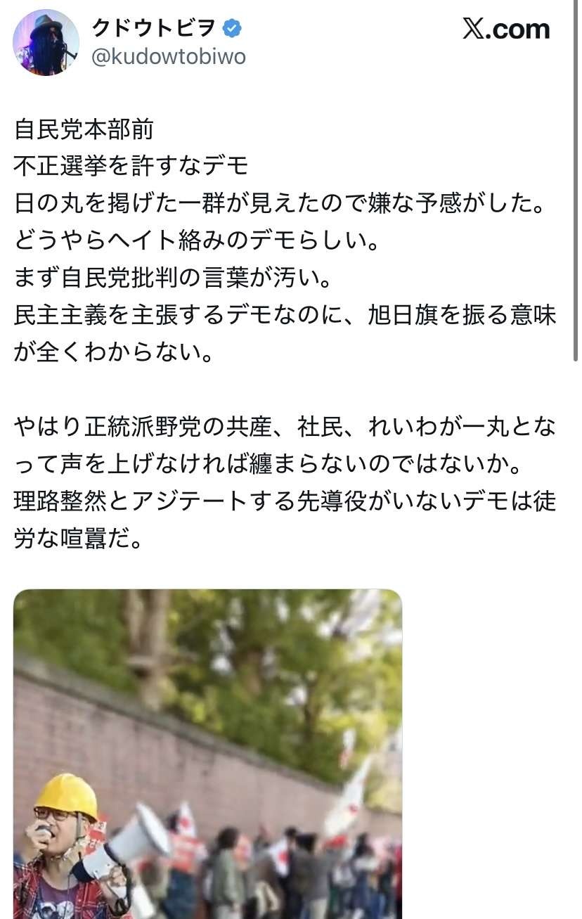 いや左翼でもデモで国旗旭日旗ぐらいは掲げとけ