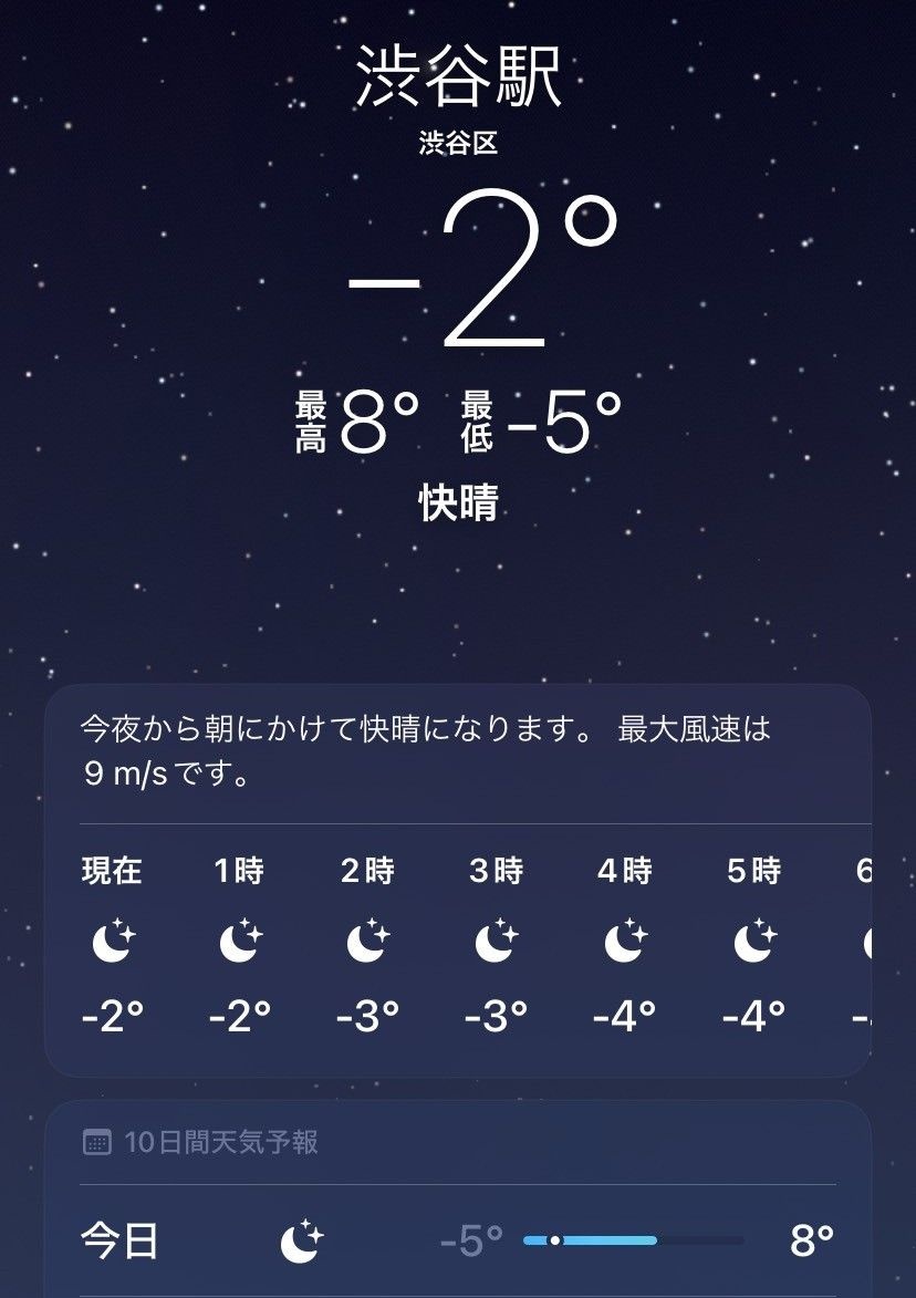 なお東京都渋谷区はマイナス2度に突入