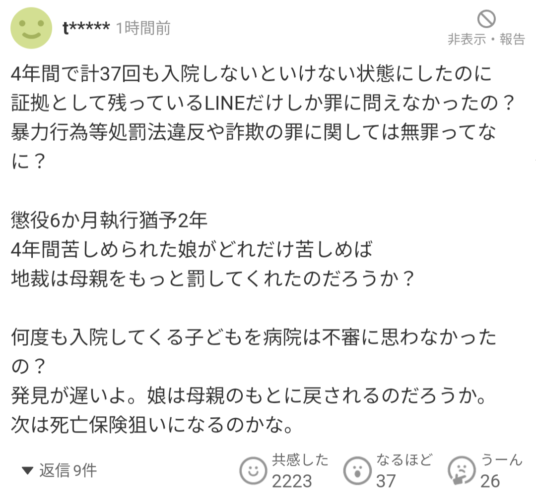 【速報】「食うなよ、寝とけ」8歳娘を絶食させようとした母親に執行猶予付き有罪判決