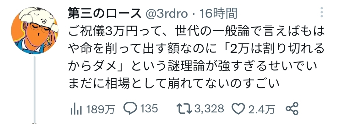 2万だと割り切れるからダメっていうのも昭和に始まったエセ伝統だけどな