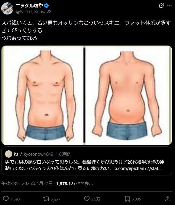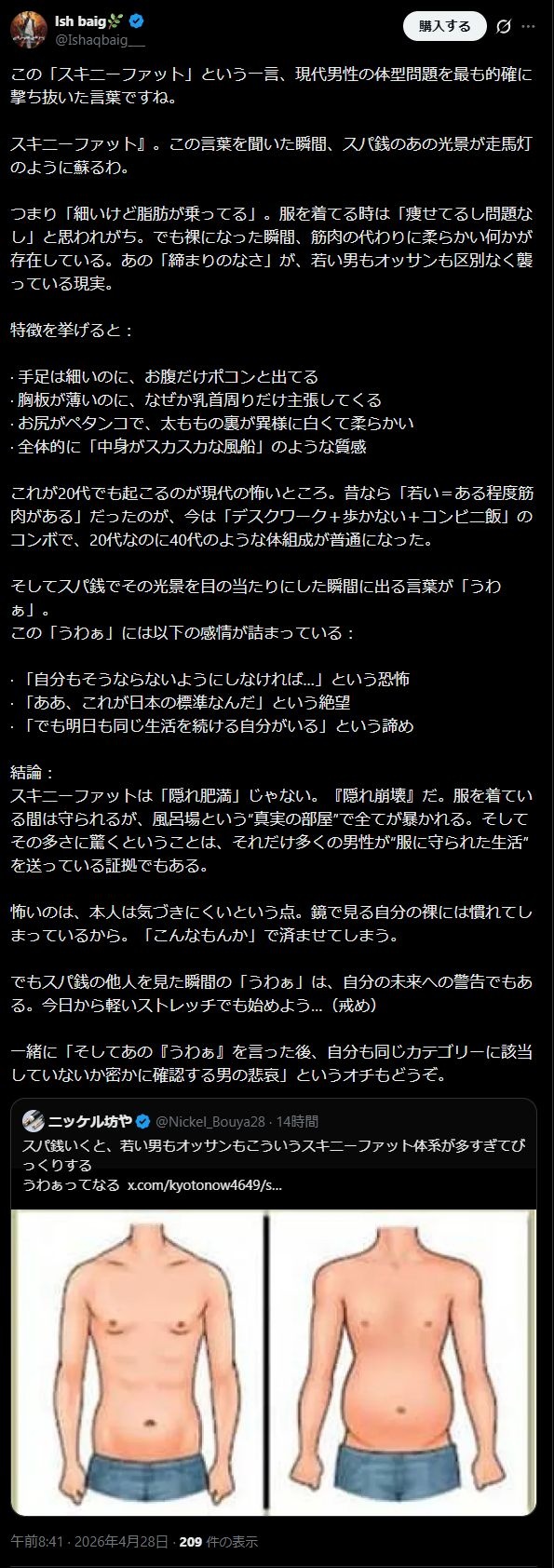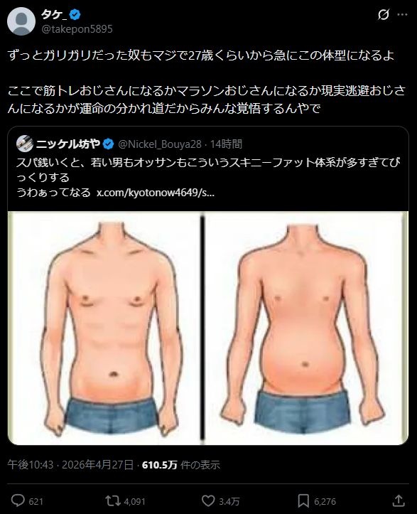 肉体労働なのに見た目はスキニーファットで咽び泣く