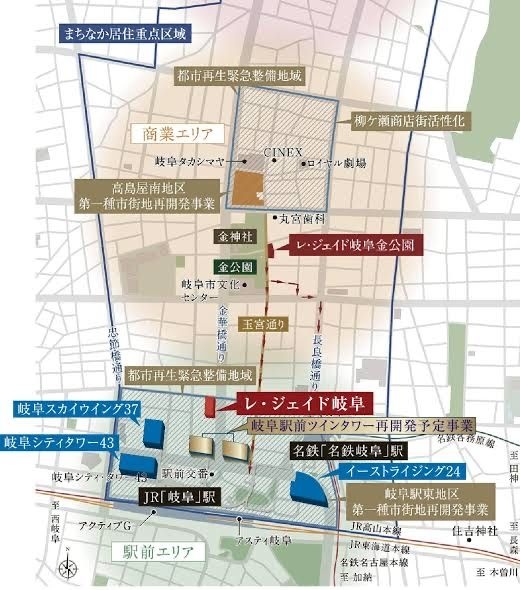 ・県庁所在地駅直結なので買い物に困らず超便利、近くにロフトや駅ビル、名鉄駅ビルの再開発計画も
