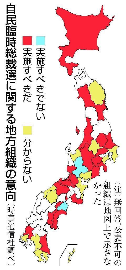 21道府県連、総裁選前倒し求める 首相続投に異論広がり―過半数届かず・時事通信調査