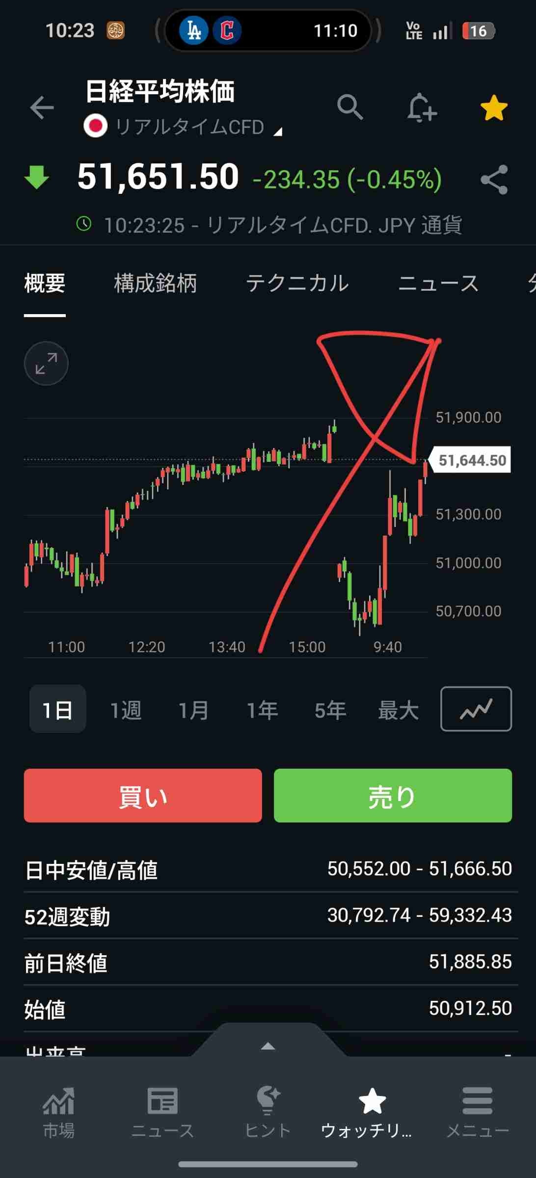 どうせ時間外で急落するんだろ?