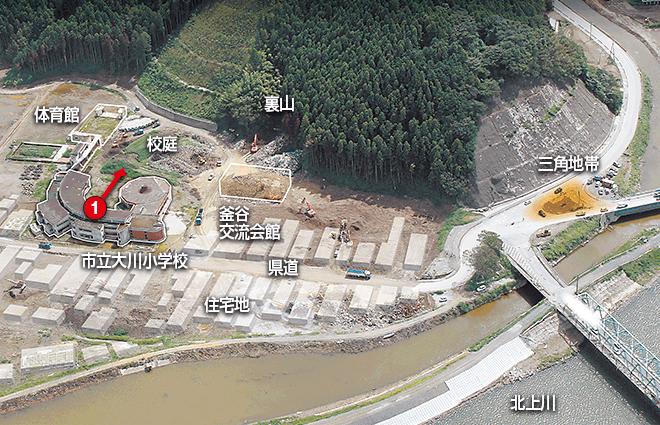 教諭の中で唯一生存した男性は、三角地帯に向かう列の最後尾にいて学校の裏山に登って助かった。