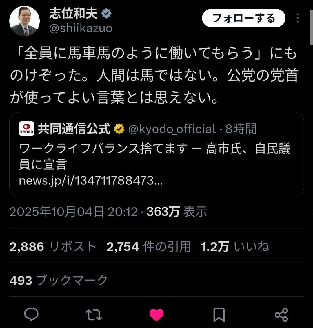 高市早苗も自民党も共産党も志位も消えろやゴミ
