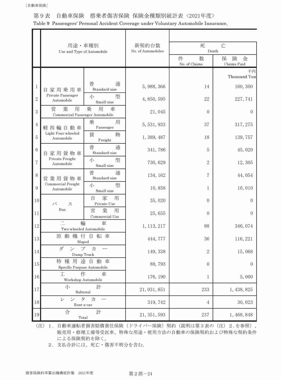 ・100万台あたりの搭乗者死亡数(2020年度+2021年度)