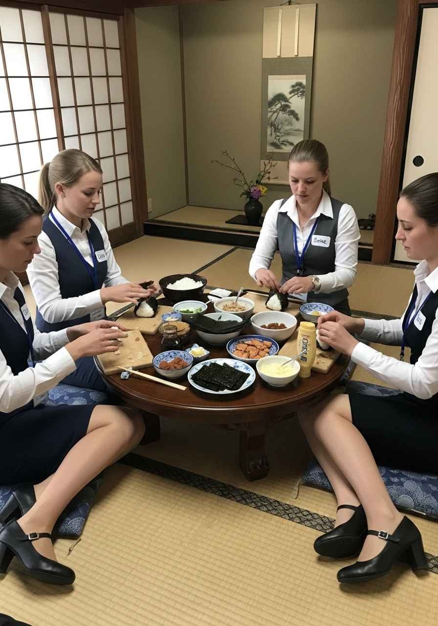 集団でおにぎり作ってます