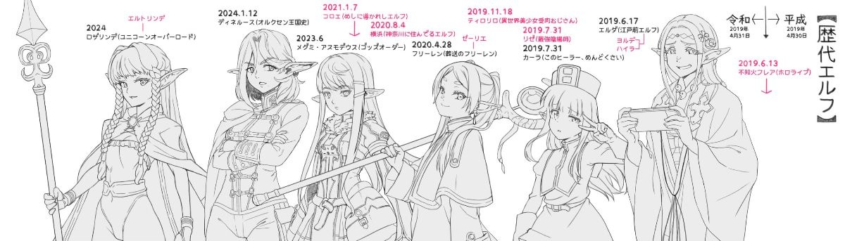 【画像】「昭和から令和までのエルフ」がこちら 貴殿らのおきにはどのエルフ?