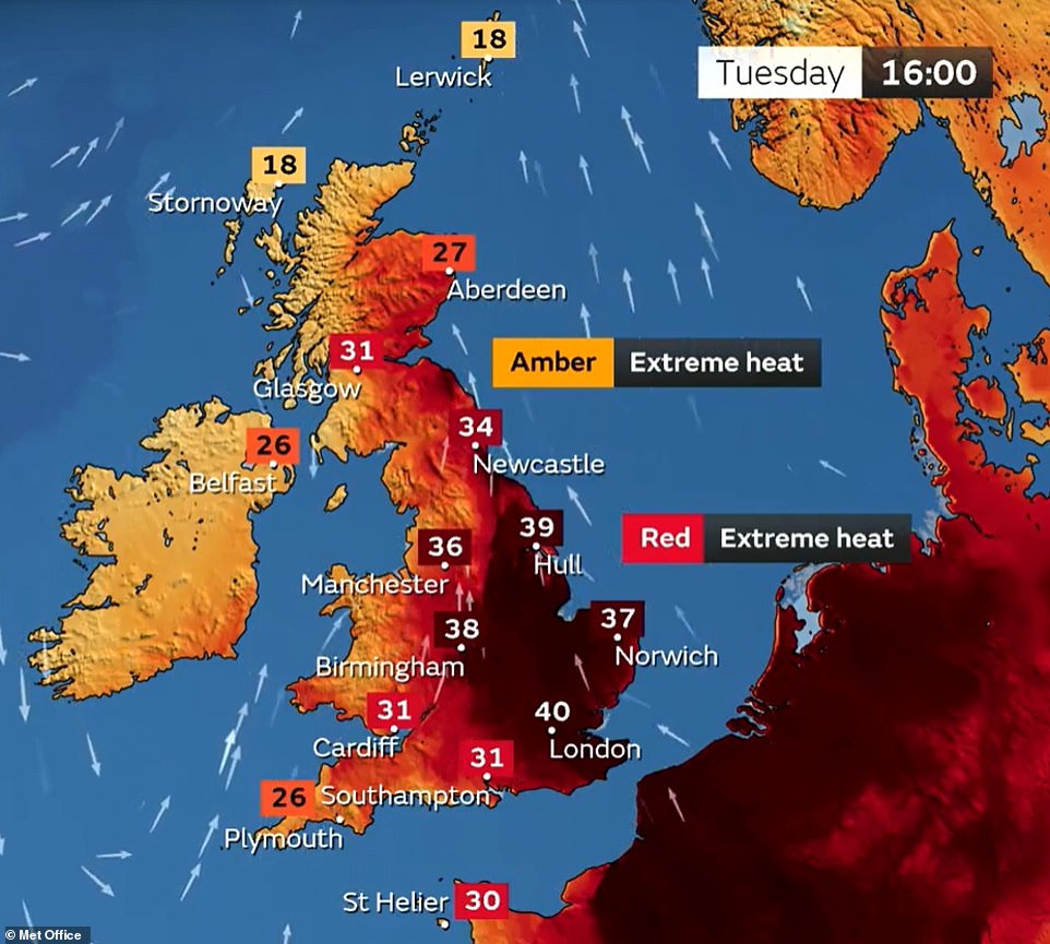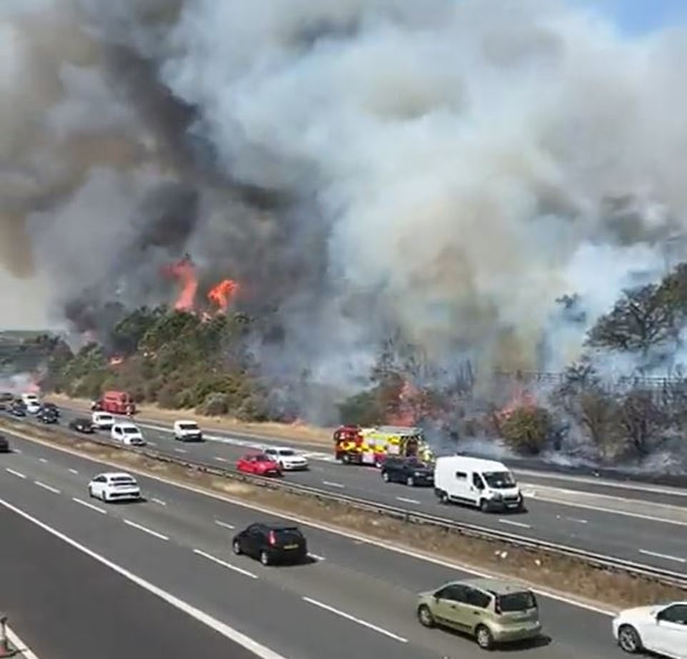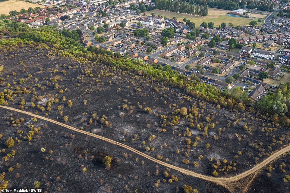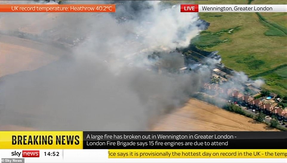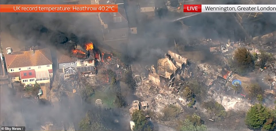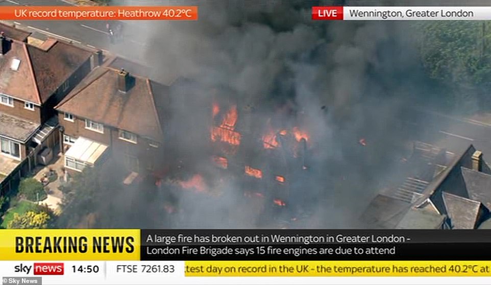 山火事は歴史上最も暑い日にエセックスの家を破壊します:イギリスが記録的な40.2Cに達した後、ロンドン消防隊が「重大な事件」を宣言したとき、イングランド南部を横切って炎上しました-道路が溶け、学校が閉鎖され、国が停止しました