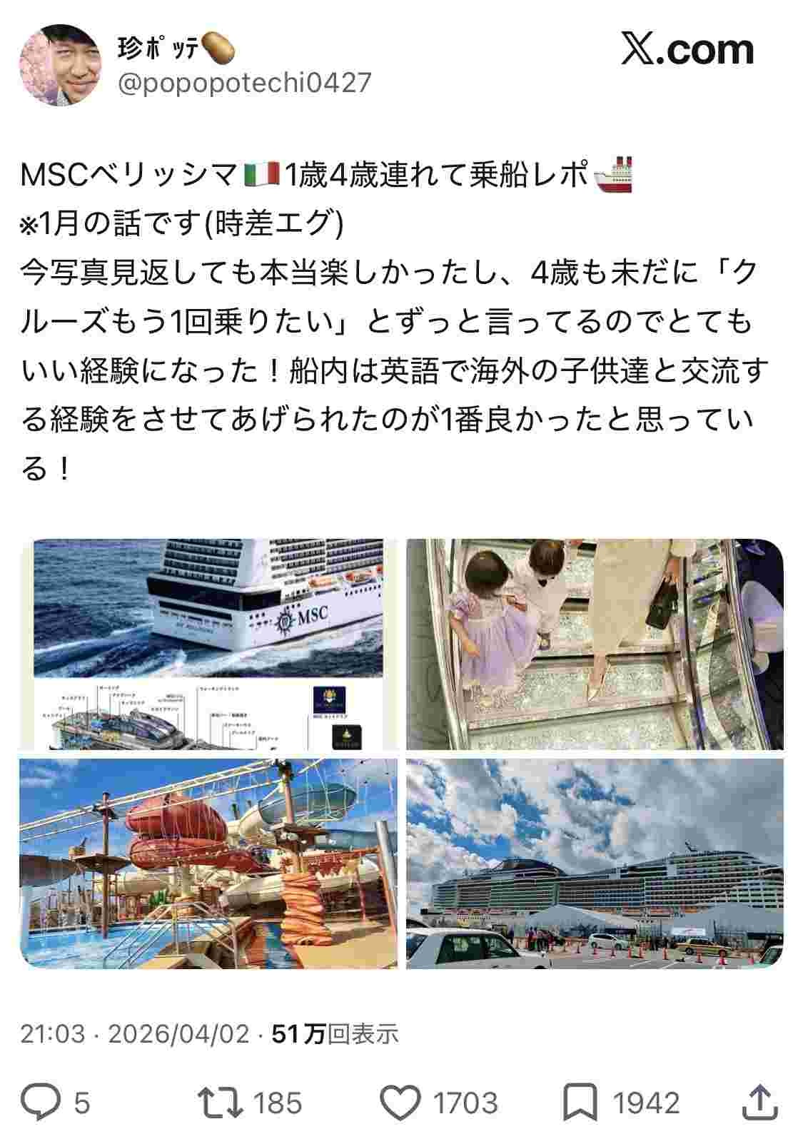 親子で豪華クルーズとか絵空事の話思えて嫉妬も起こらないわ