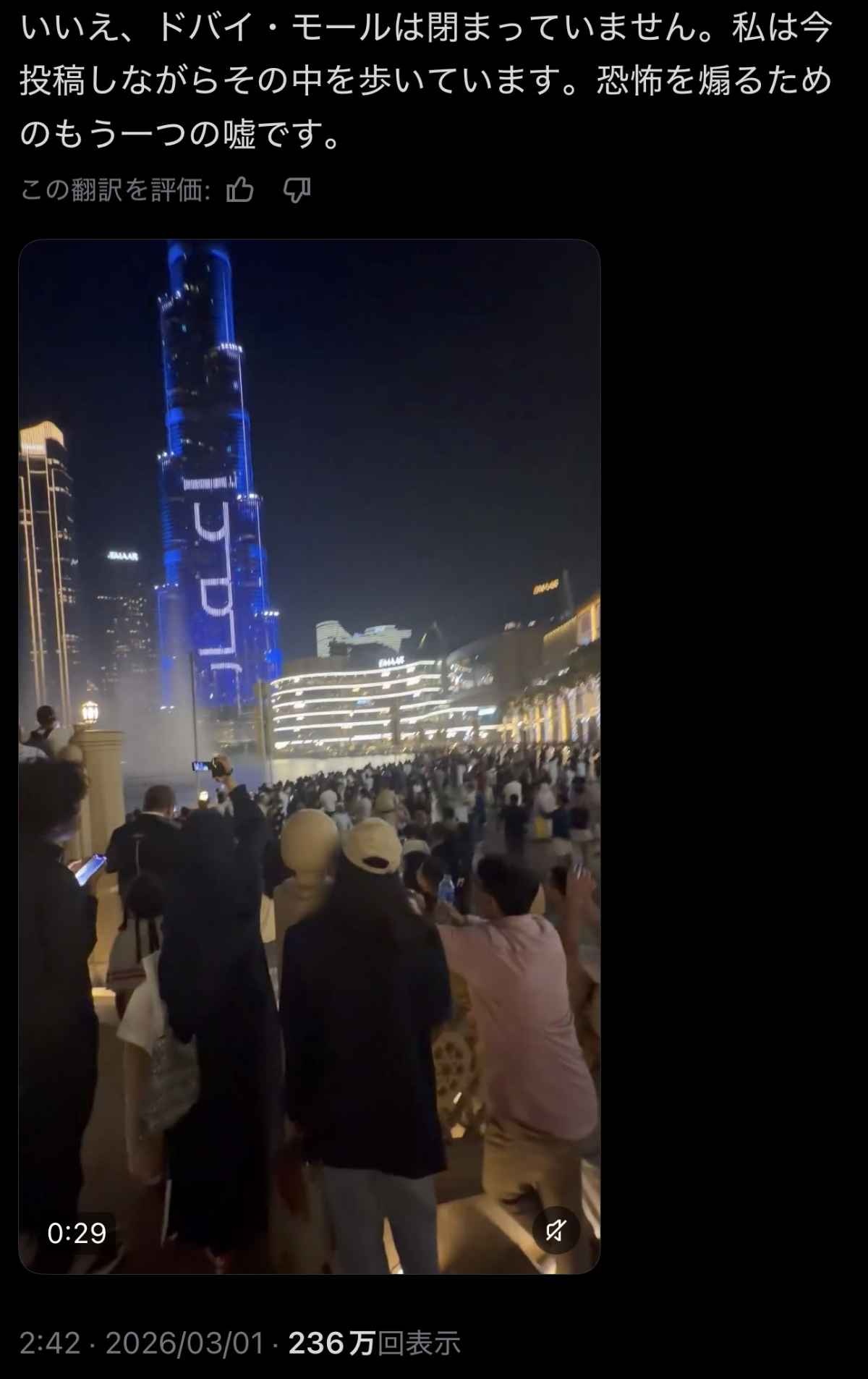 【画像】ドバイ、通常営業だった… SNSの情報に惑わされてる日本人バカですw