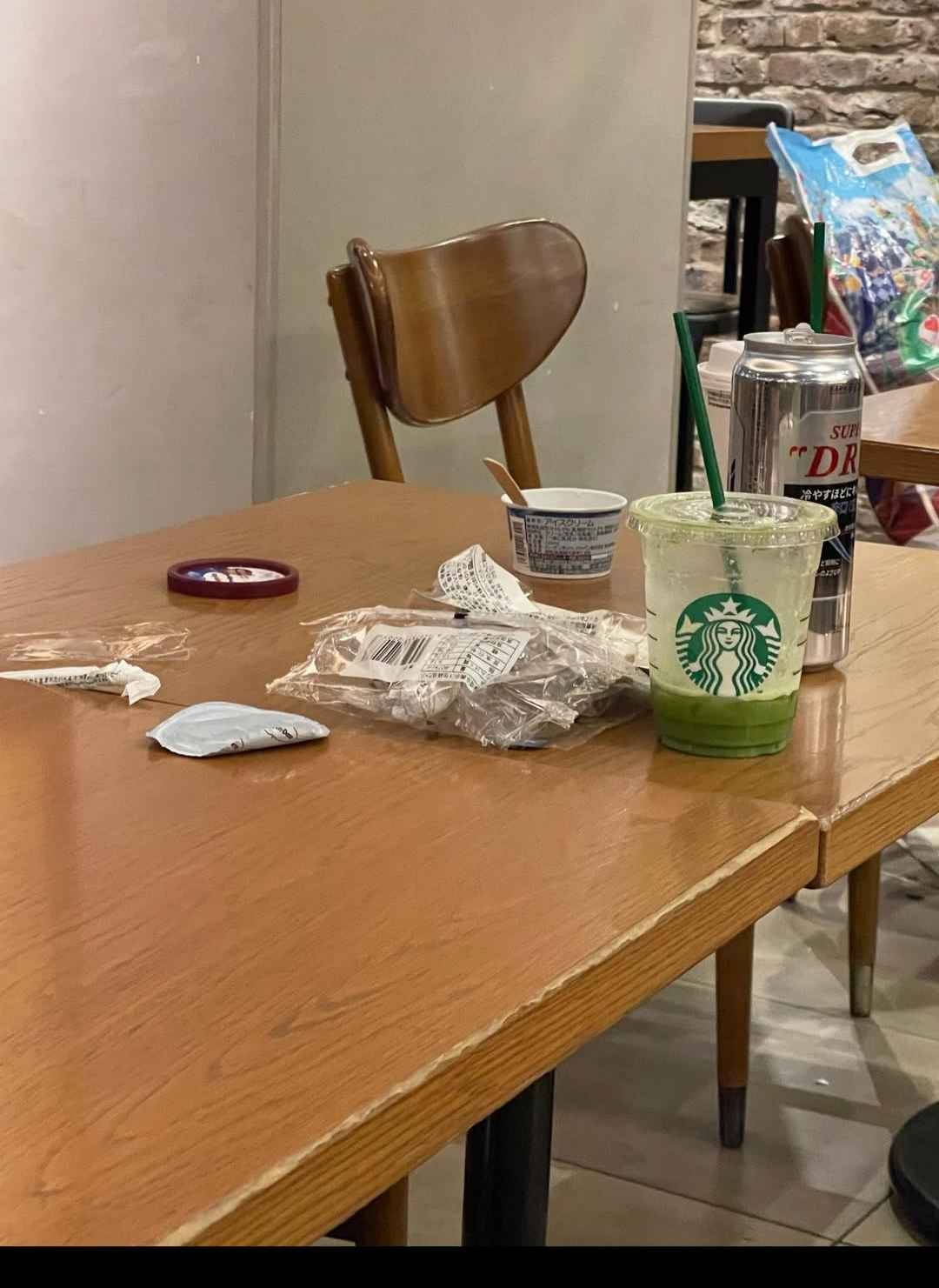 イオンのフードコートでも持ち込んだゴミは捨てるやろw