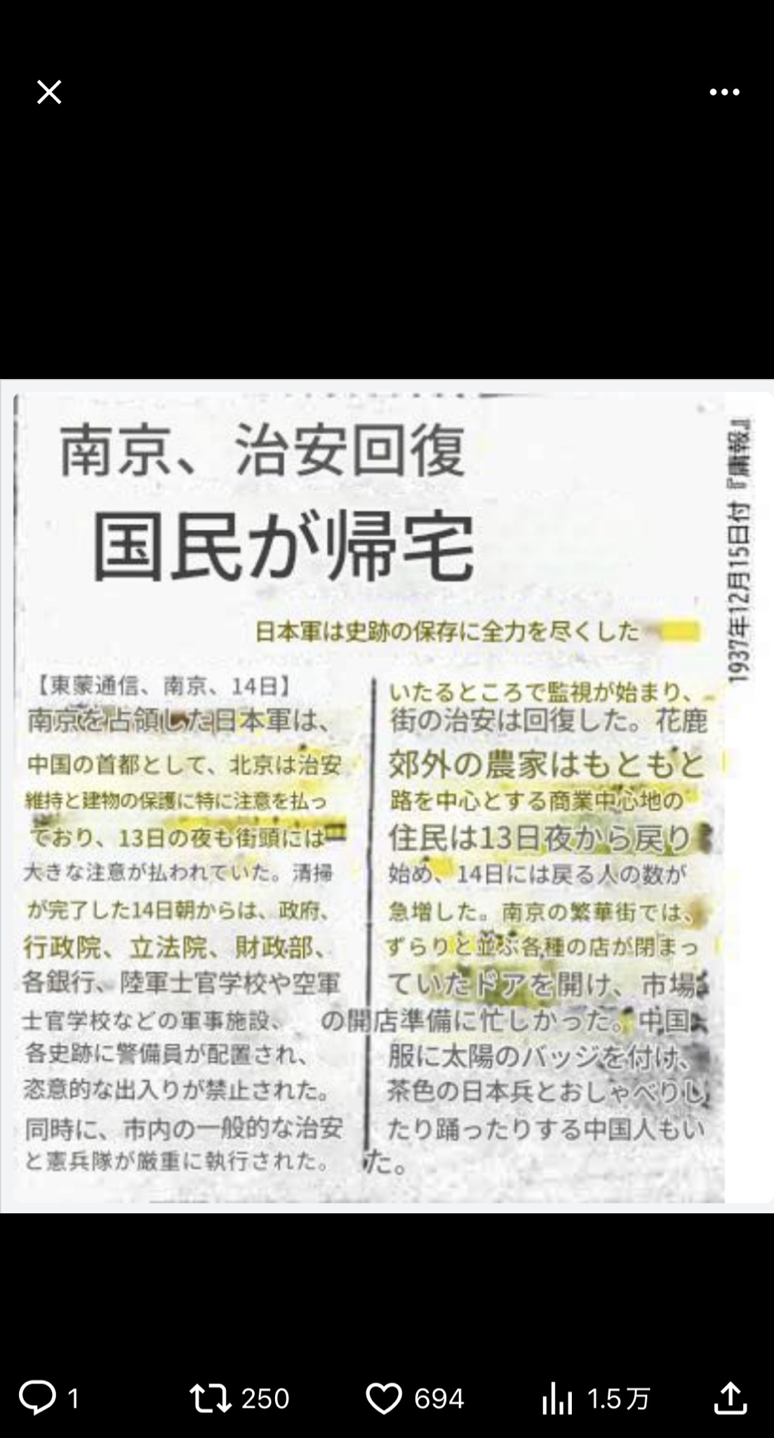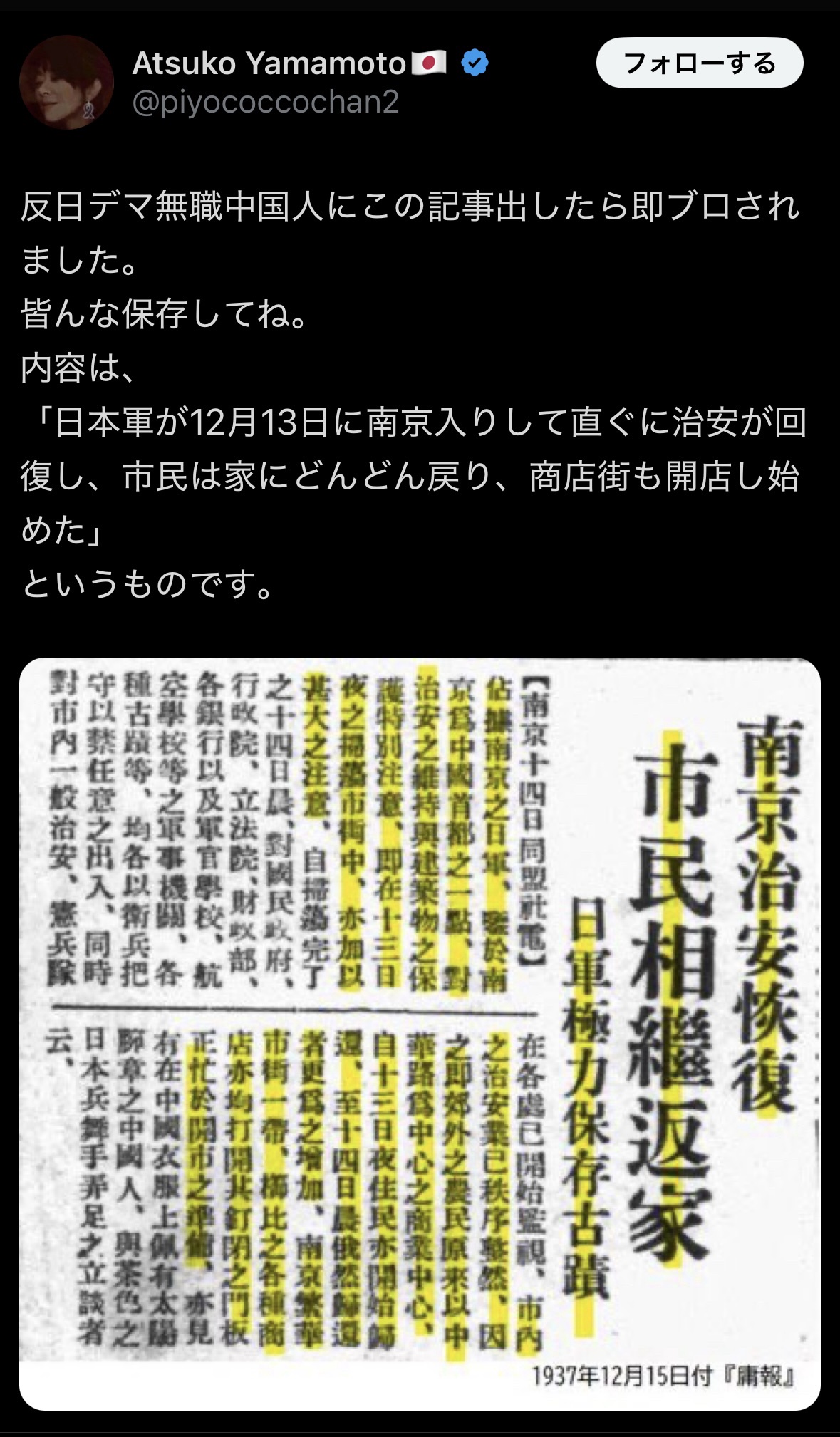 【画像】南京虐殺、ガチで誇張デマの可能性浮上。当時の新聞が発掘される。Xで5万いいね