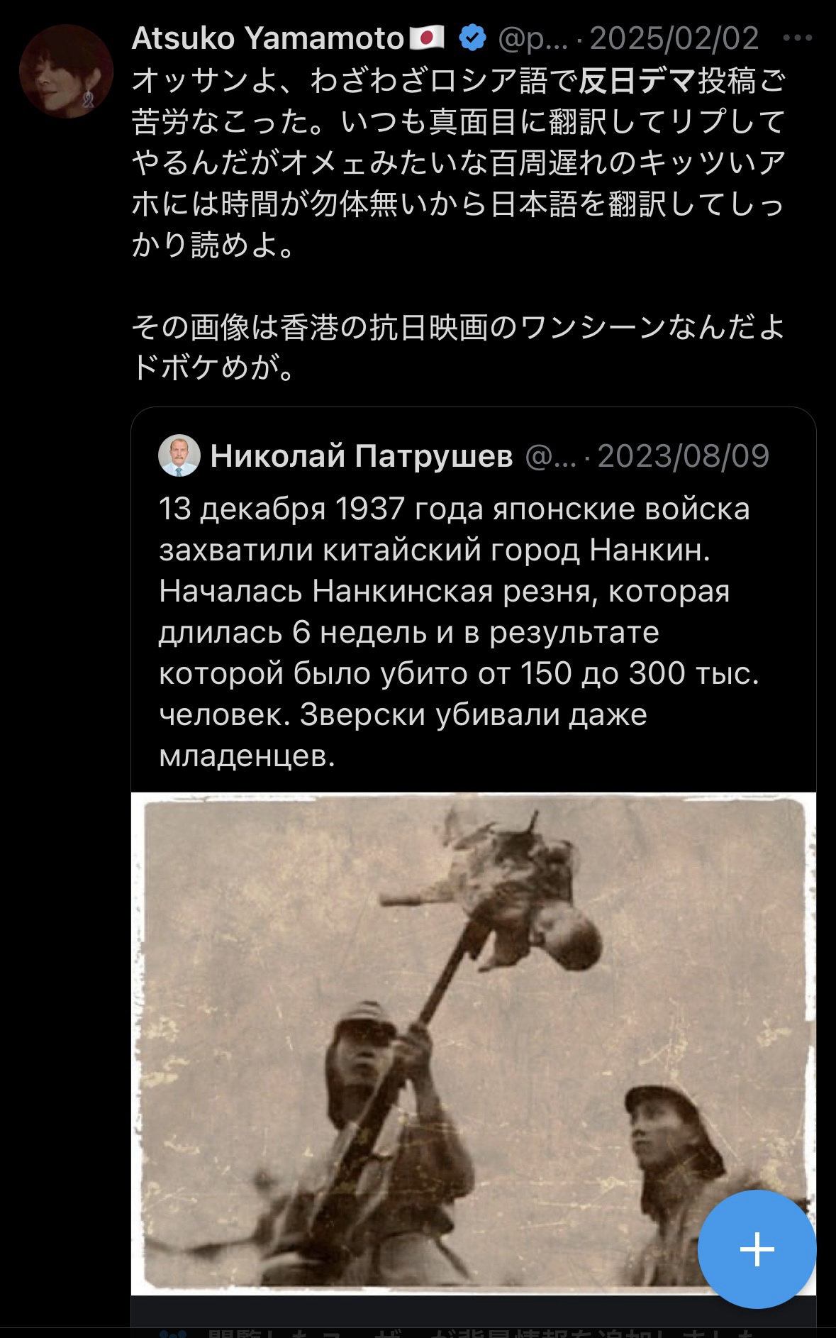 日本と戦争になった時に、多くの日本人は、中国の強大な力を目の前にしてようやく過去の虐殺について反省する事ができるだろう。 - 72 : 2025/02/18(火) 10:24:58.99 ID:o1lZsd8T0