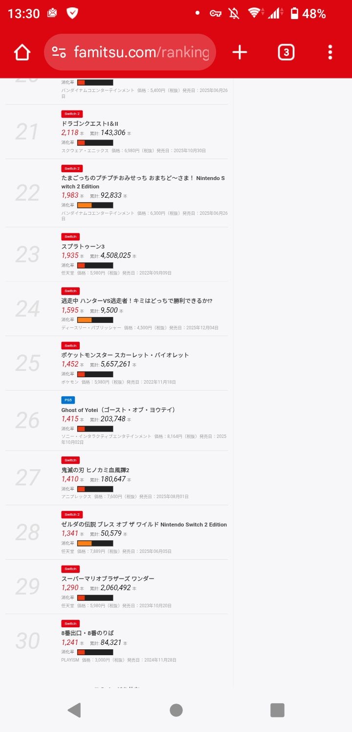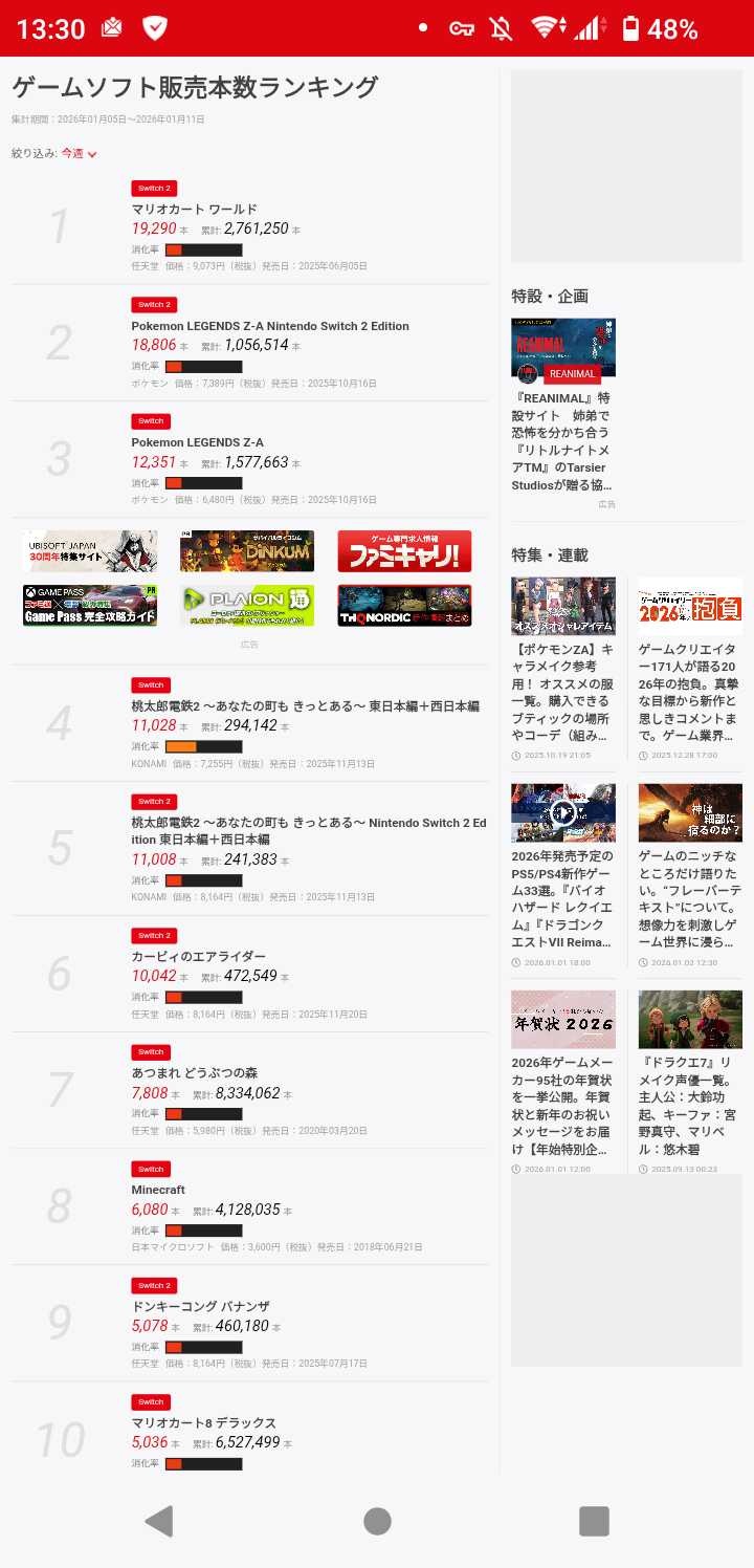 3DSくらいまでは他社のゲームもランキングにバラけて入ってたか