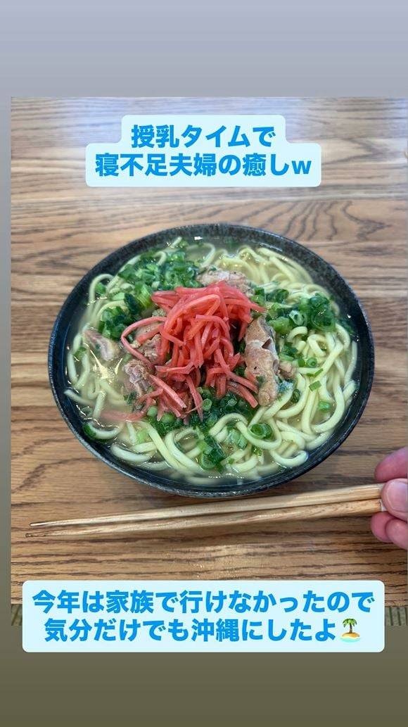 杉浦太陽が作った沖縄そば、見た目もなかなか美味しそうに見えるな。具材もちゃんと乗ってるし、家庭で作ったにしては上出来なんじゃないか。