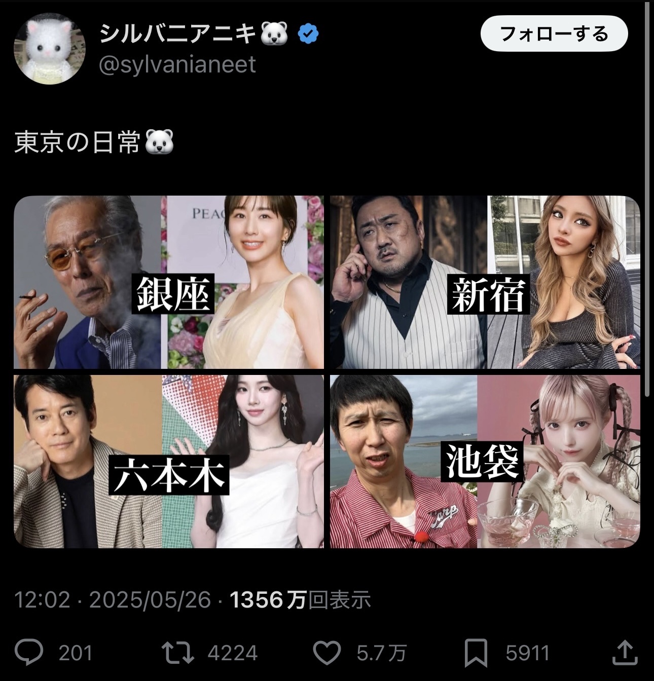 【画像】東京の各街歩いてる人だいたいこんな感じ→6万いいねwwwwwwwwwwwwwwwwwwwww