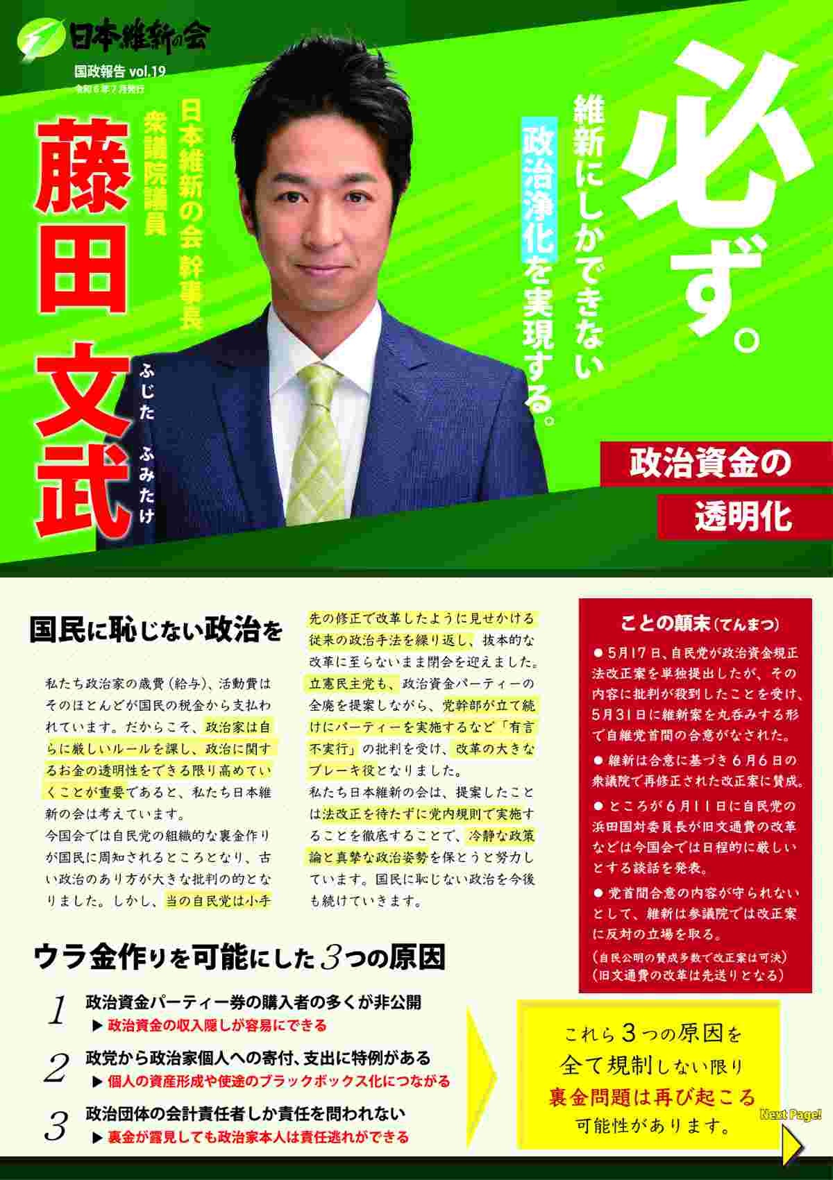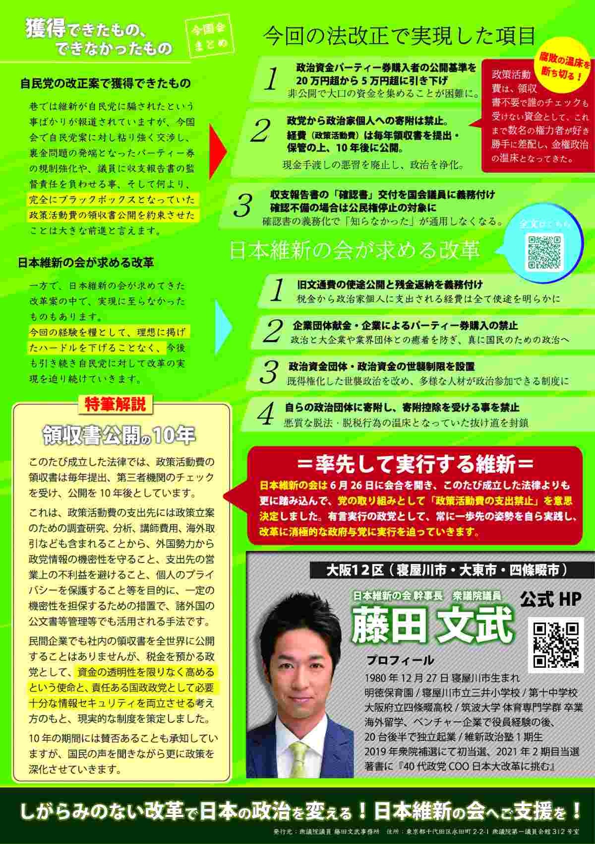 維新大阪支部も藤田氏秘書の会社に発注 政党交付金でビラ作成を依頼