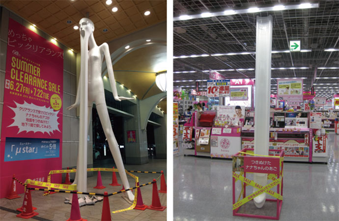 ナナちゃん人形が「うんこミュージアム」オープン記念衣装に変身中。