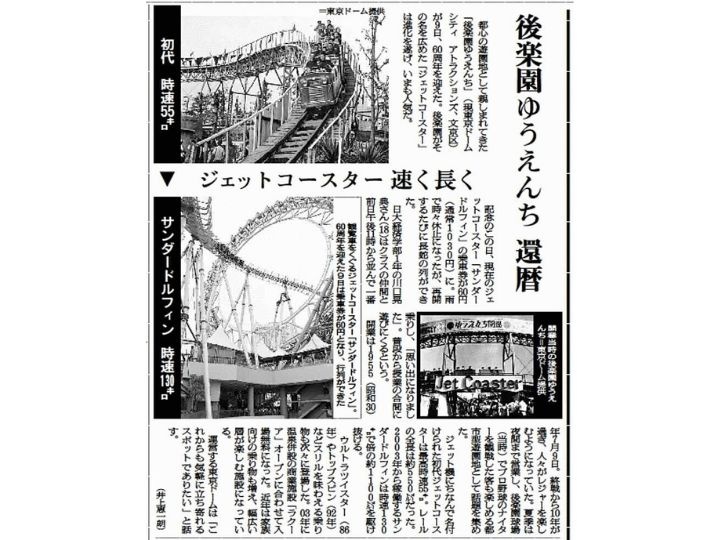 後楽園ゆうえんちの60周年を伝える2015年7月10日付の朝日新聞朝刊(東京本社版)