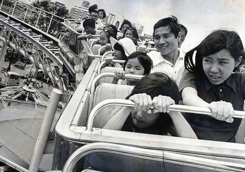 後楽園ゆうえんちのジェットコースター。1975年(昭和50年)撮影