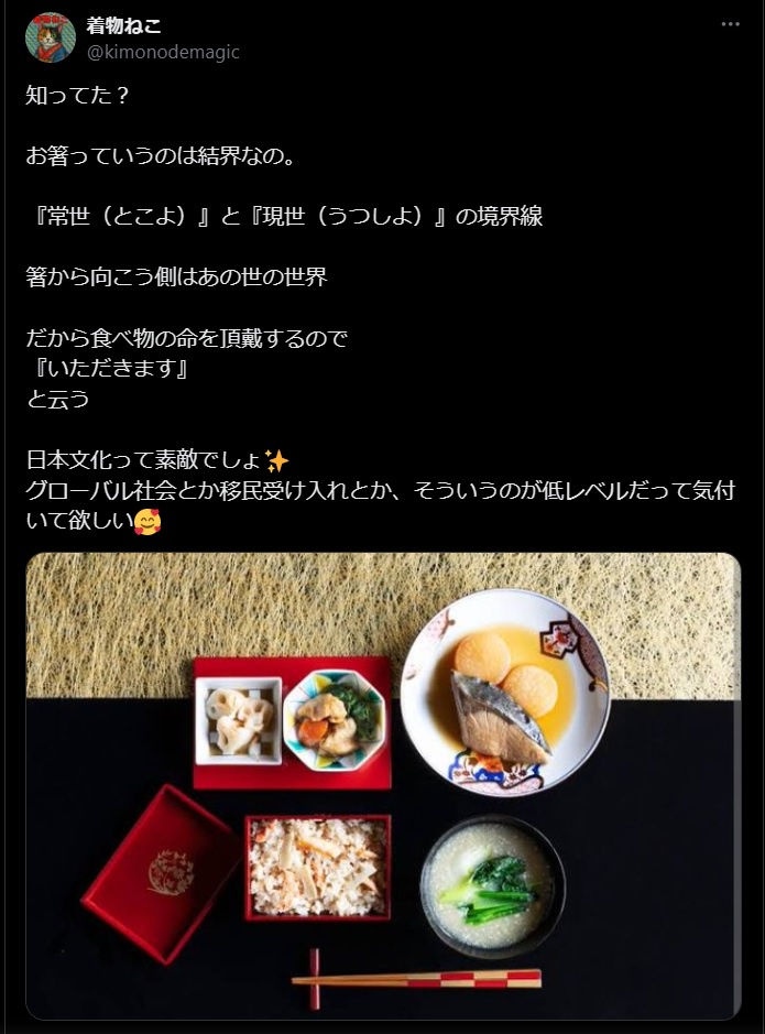 【真実】 箸は結界だった 箸から向こう側はあの世の世界 だから『いただきます』と云う