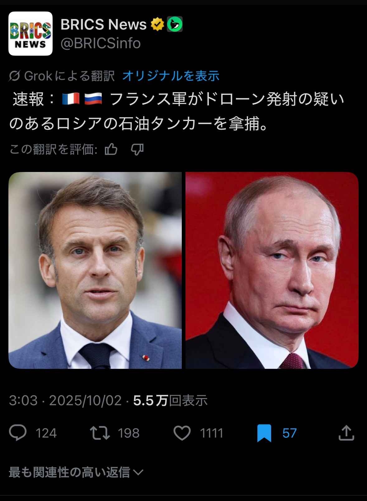 怖いのはマクロンがプーチンに丸め込まれて仏ロずっ友になることだな