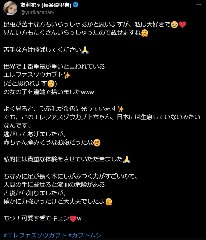 【虚言】 落合祐里香さん、日本に生息していないはずの昆虫を偶然道ばたで発見してしまう
