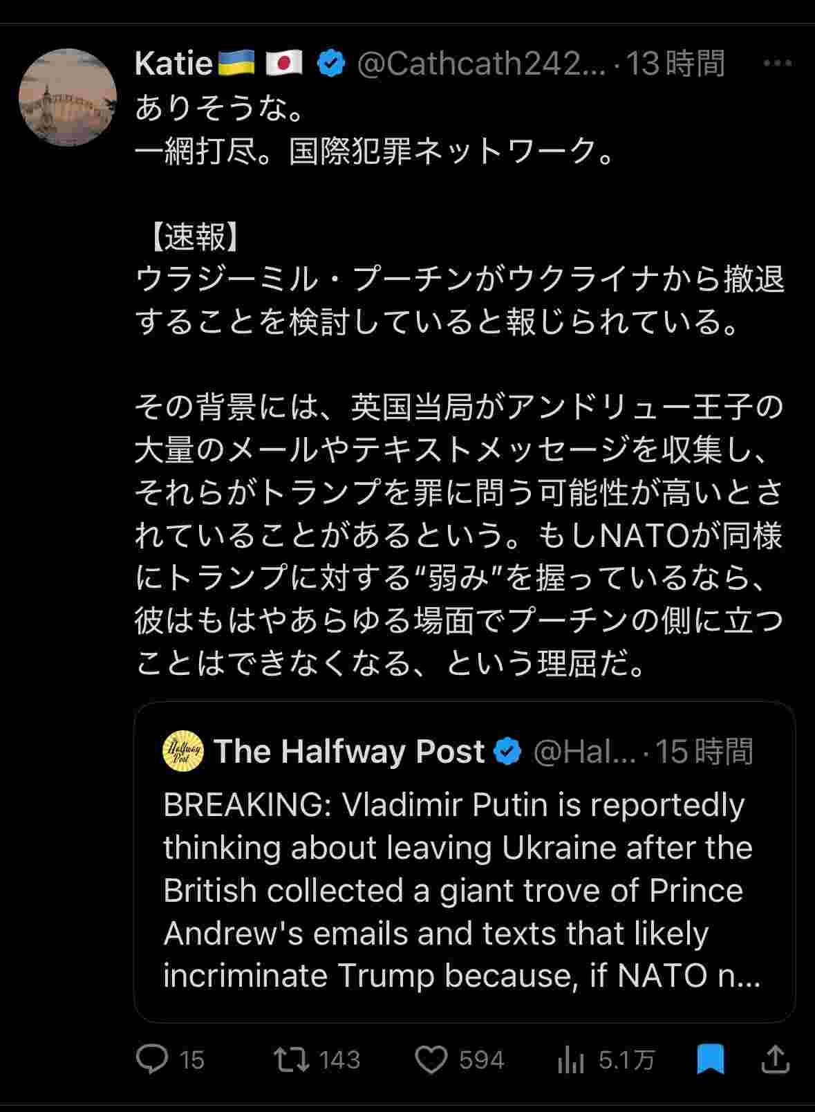 トランプが失脚するとなんでプーチンが撤退するんだよカス
