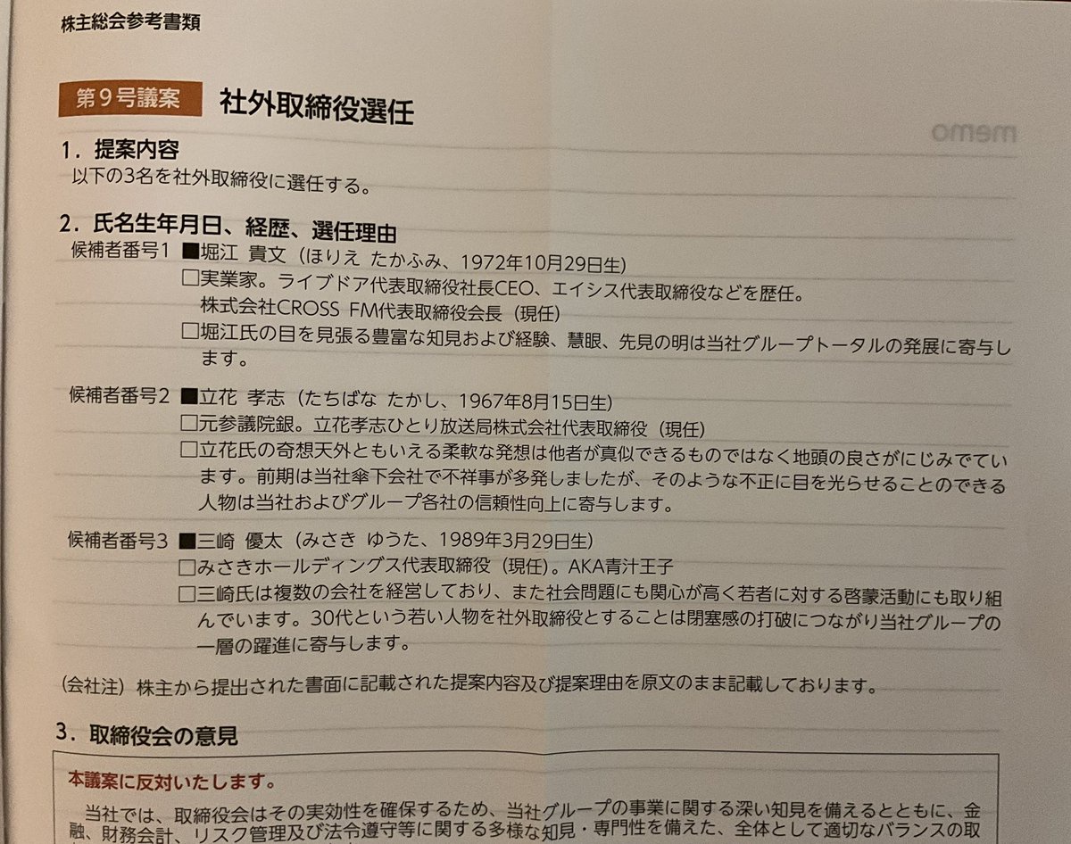 ケンモメンも株主提案で俺らの代表を候補にしようぜ