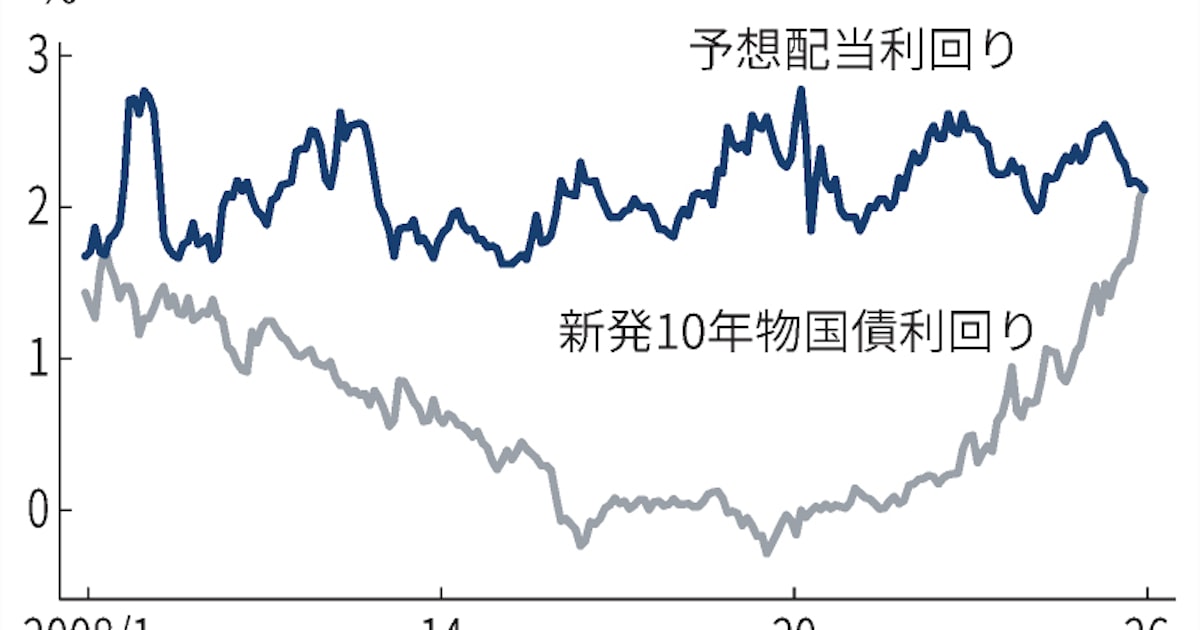 【超絶悲報】日本株配当利回り、長期金利を17年ぶりに下回るwww