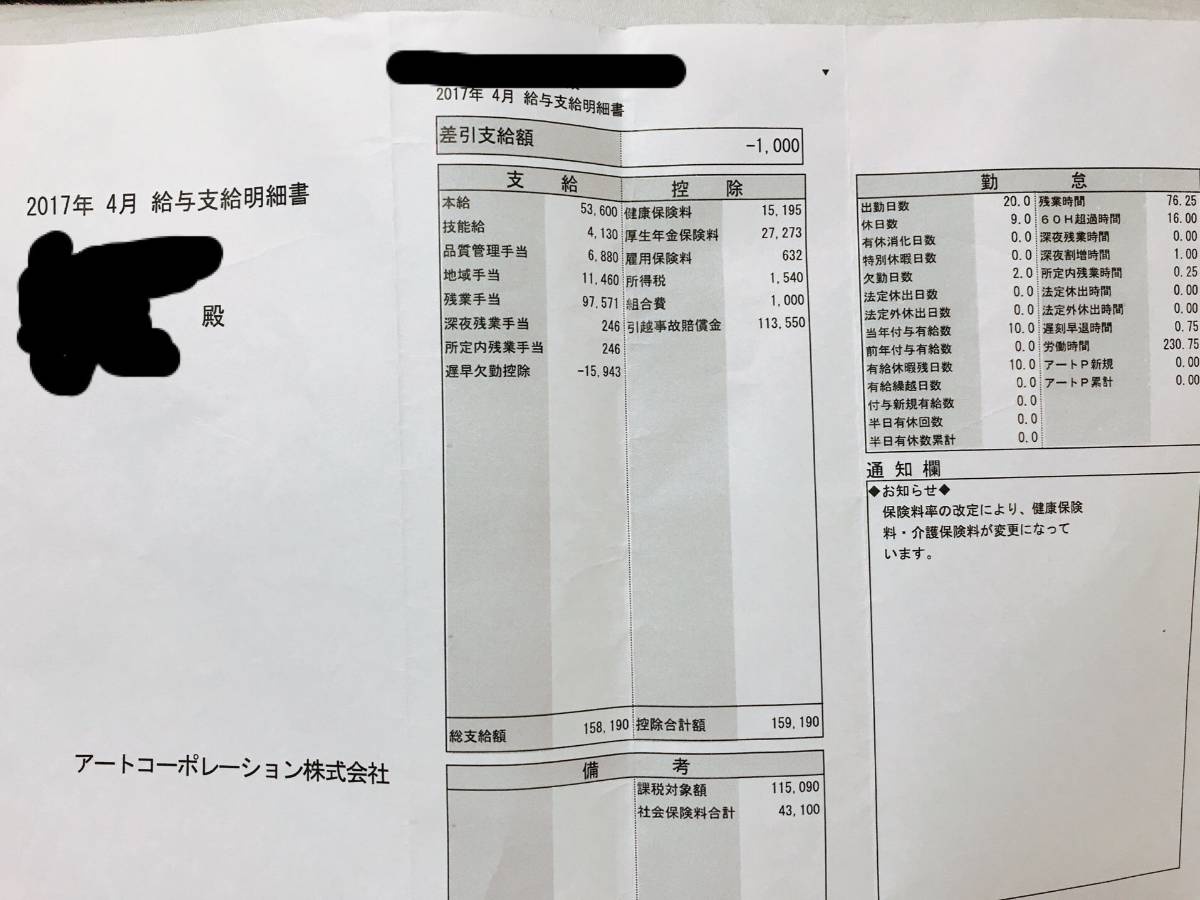 額面50万くらいやけど手取り36万くらいやわ