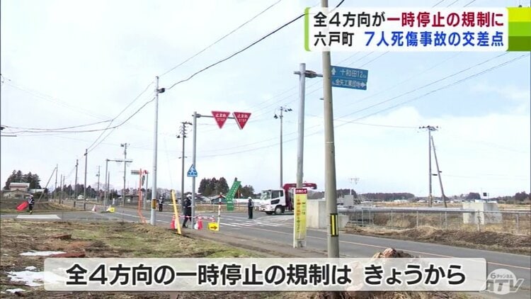 2024年9月、青森県六戸町の十字路交差点で7人が死傷した事故を受けて、警察は交差点の4方向すべてを一時停止の規制としました。