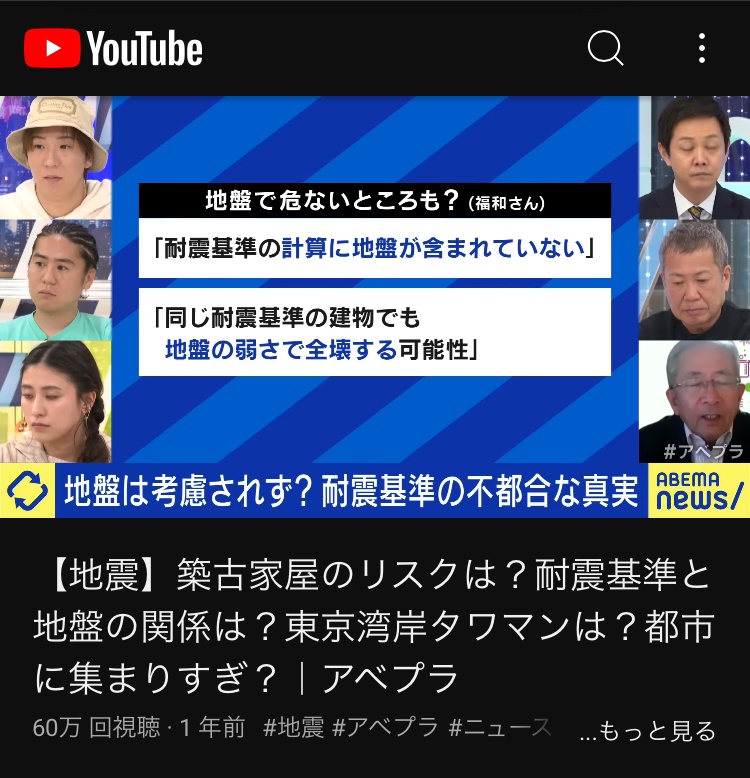専門家「あと言いづらいんですが、マンションより一戸建ての方が災害に強いです。マンションは構造計算をしていますが、戸建は構造計算の義務はないので、余裕を持った設計をしています。つまりマンションは基準ありきですが、戸建は基準ではなく過去の経験ベースで建てています。建築基準法さえ満たしてればいいという建設法にしていないか、頭の隅に置いておく必要があります。」