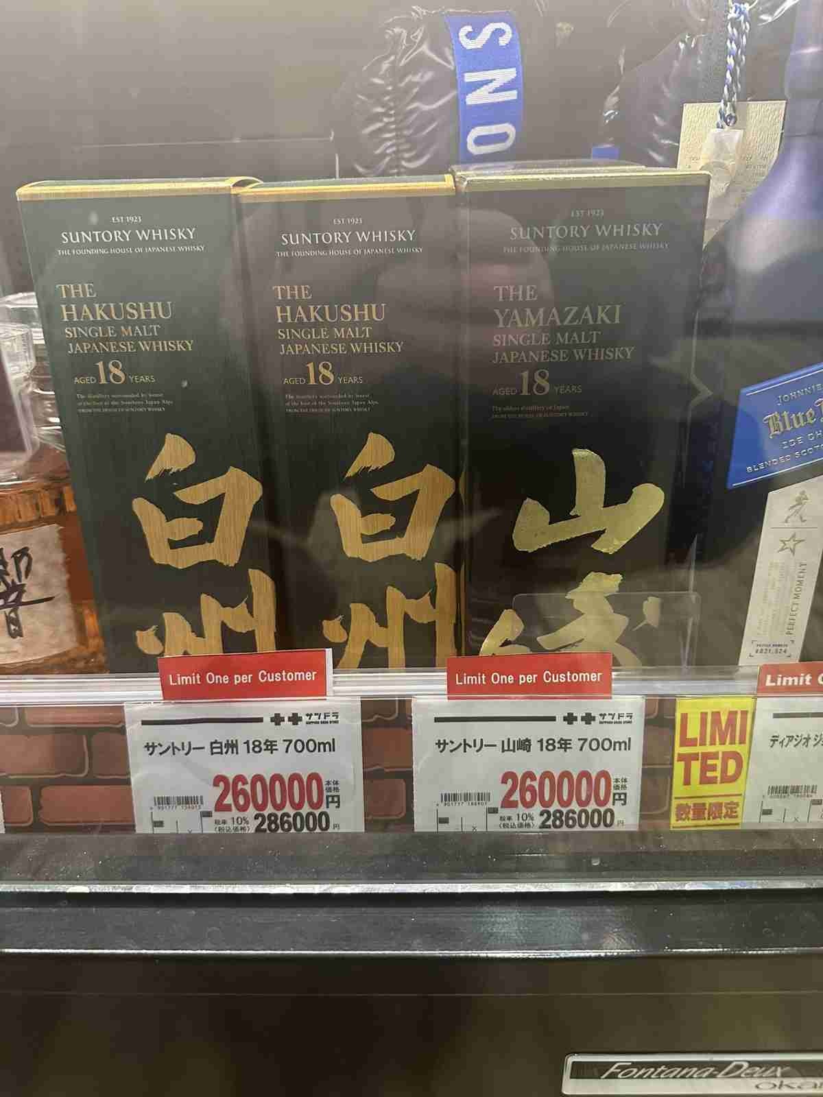 10万超じゃなかったかもしれないが、山崎とかの箱は都内のスーパーでも見たが