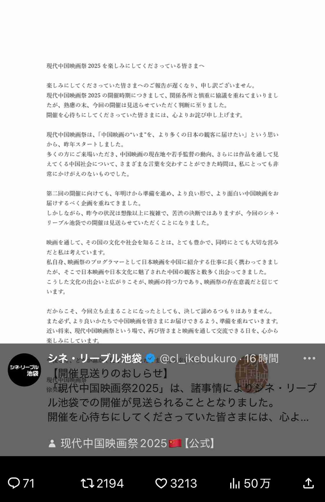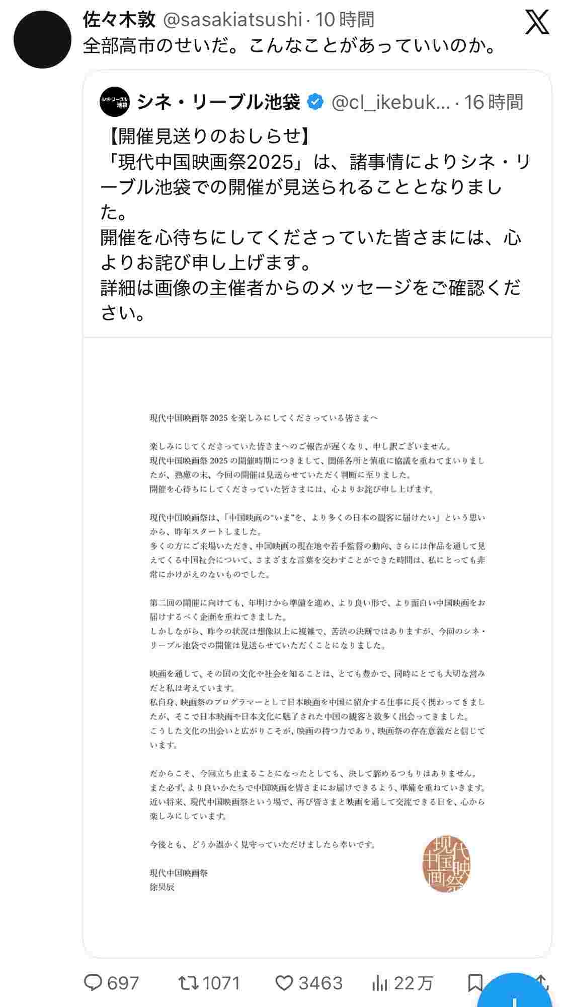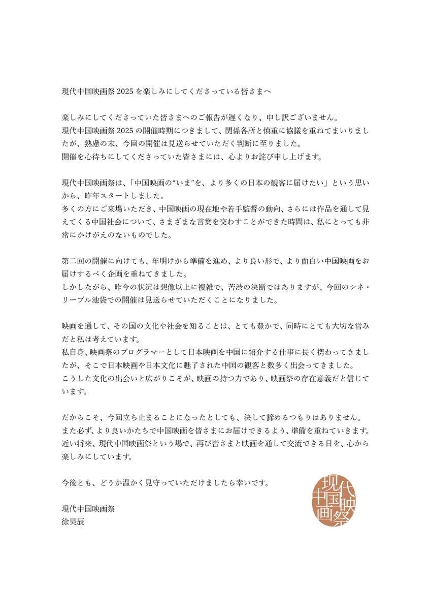 また日中の民間の交流が1つ消えたぞ
