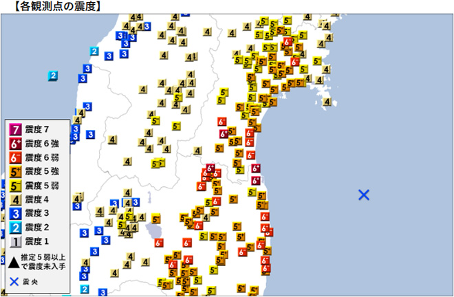 宮城で地震被害受けた。内陸で津波は大丈夫だった