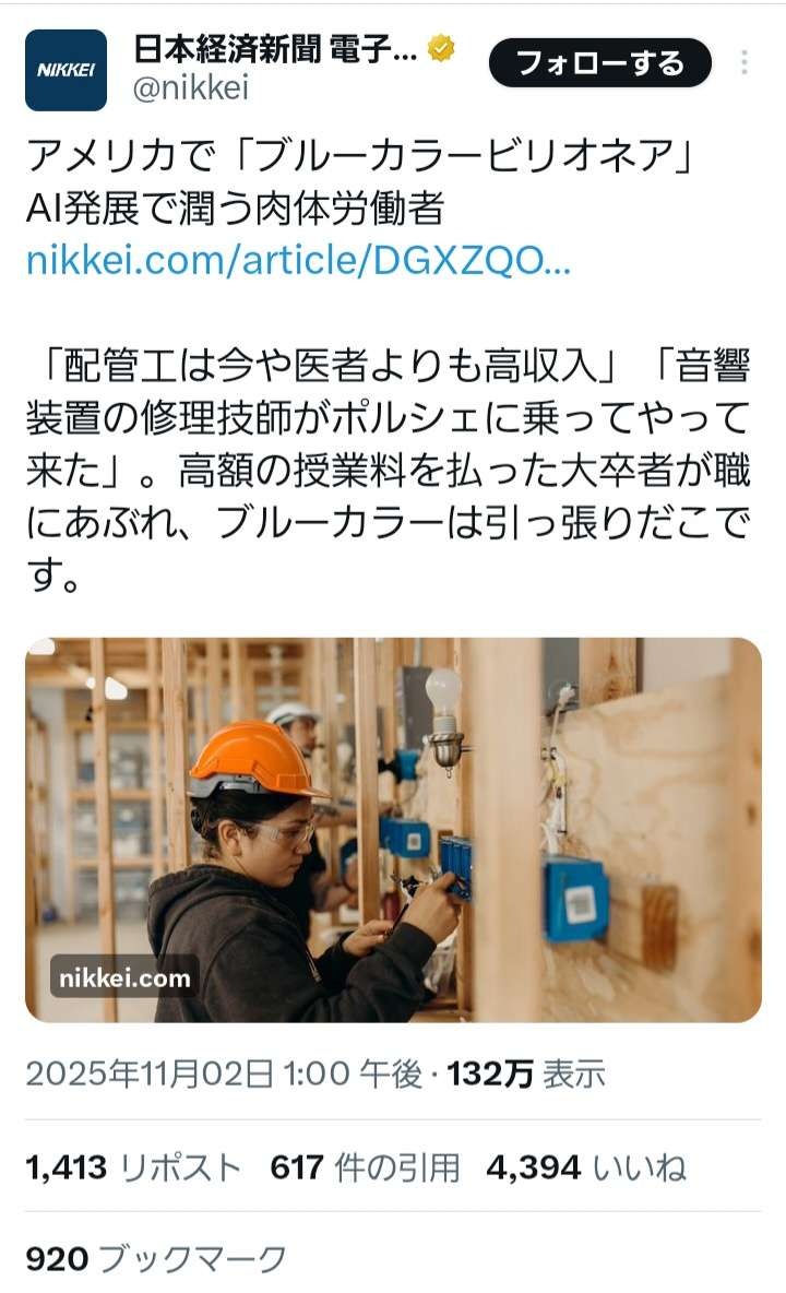 これ論調謎やけど医師も基本はブルーカラーやろ